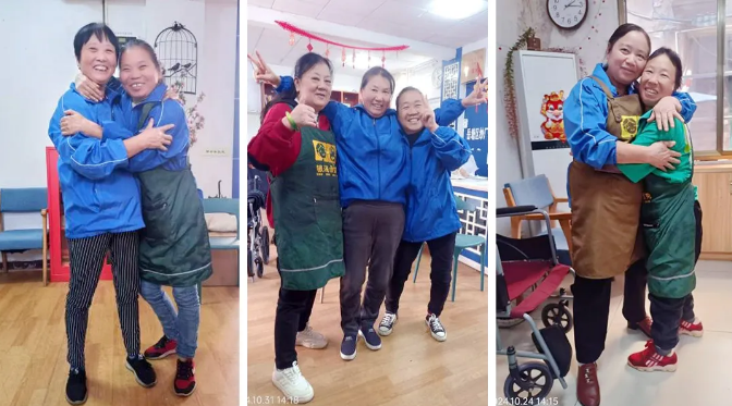 這個(gè)“愛(ài)的抱抱”,不僅是一次身體上的接觸,更是一次心靈的觸碰,它讓護(hù)理員們更加珍惜彼此之間的情誼,也更加堅(jiān)定了他們?yōu)閭z寶貝的爺爺奶奶們提供卓越服務(wù)的決心。