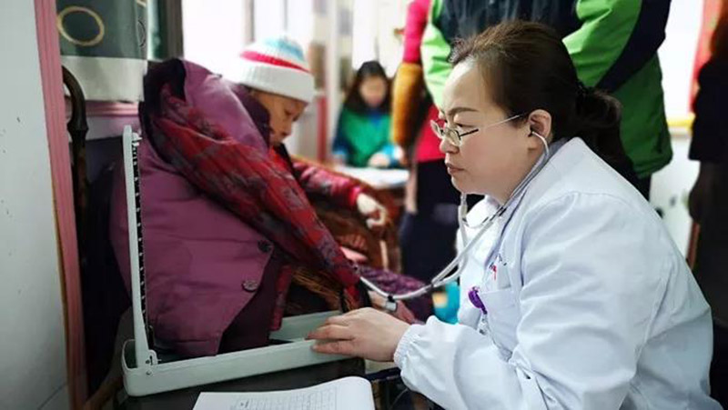 一邊詳細(xì)地詢問(wèn)老人們的身體狀況,
