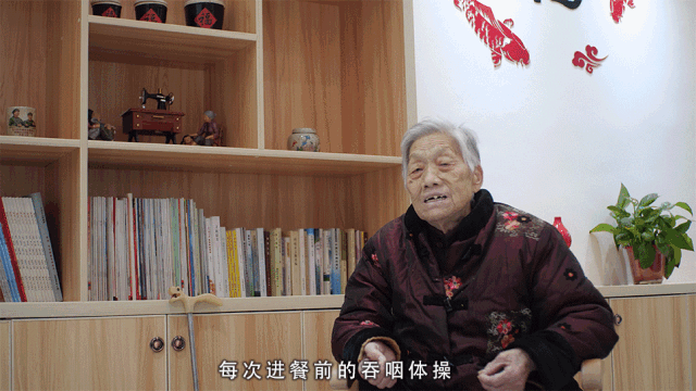 11:50,照護人員開始帶領(lǐng)大家做吞咽操。