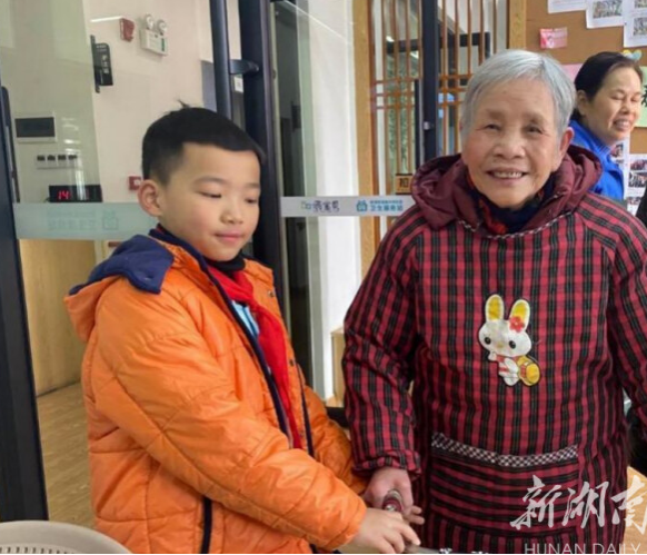 活動(dòng)尾聲,小志愿者們?yōu)闋敔斈棠虃兯蜕献约河H手書寫的“?!弊郑T笭敔斈棠虃兏郯部?!