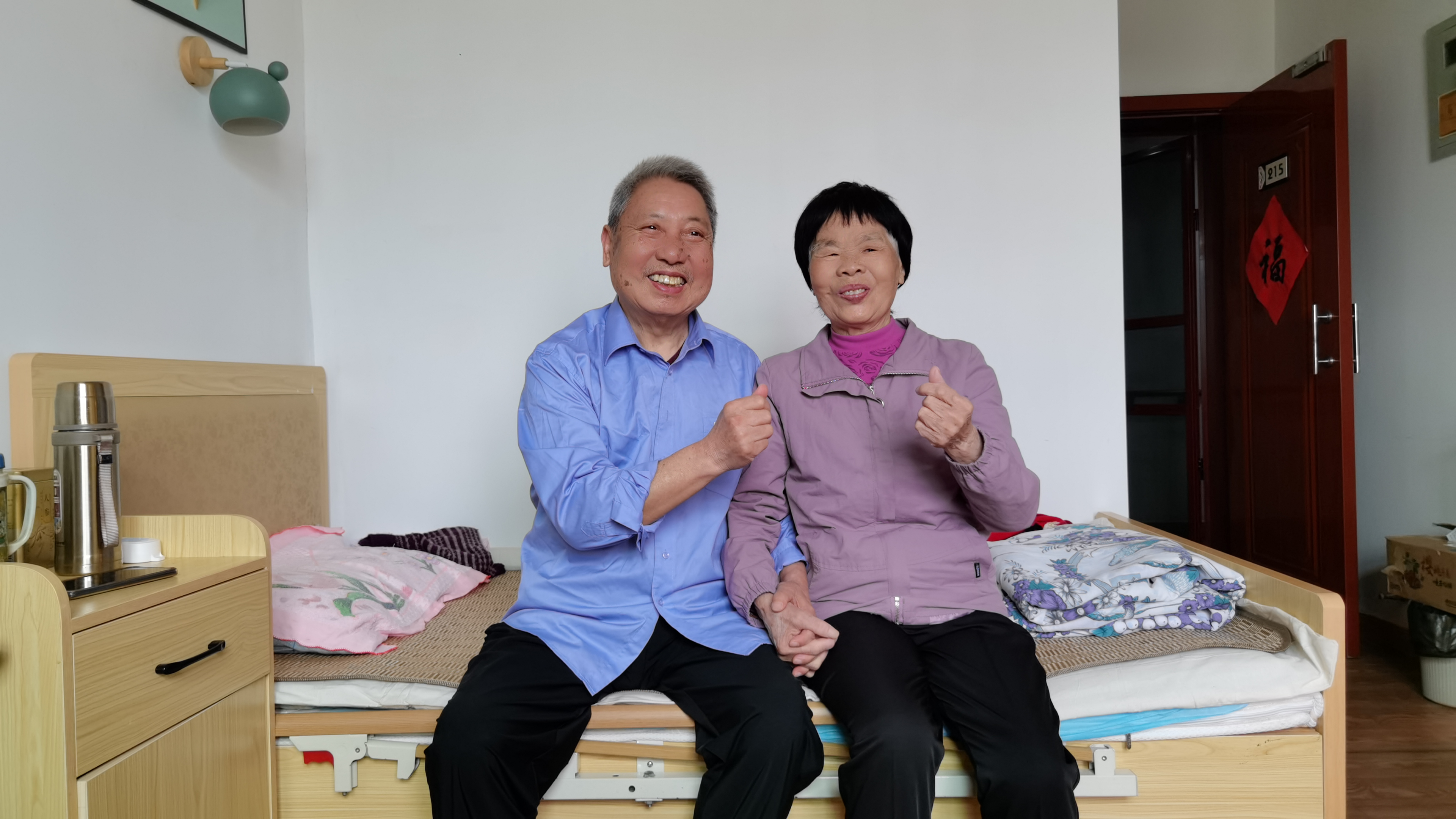 兩位老人對生活積極樂觀,平時為人和善,很熱情,很關(guān)心人,他倆相互間的照料更是無微不至。平淡的生活小事處處彰顯偉大的愛。