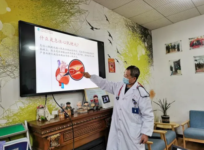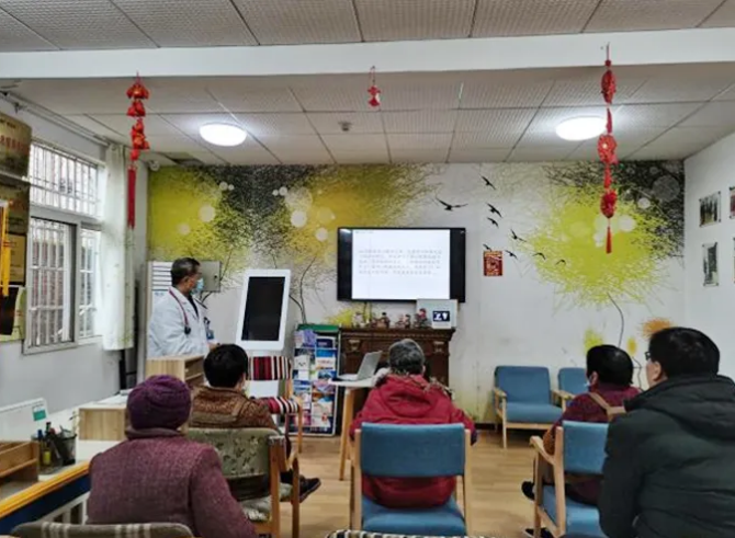春節(jié)期間,銀海倆寶貝養(yǎng)老服務(wù)中心聯(lián)合市三醫(yī)院副主任醫(yī)師奉佳山來到紗廠街長者之家內(nèi),為工作人員普及心肌梗塞相關(guān)知識(shí)。