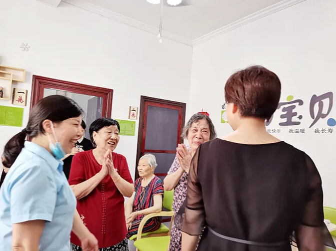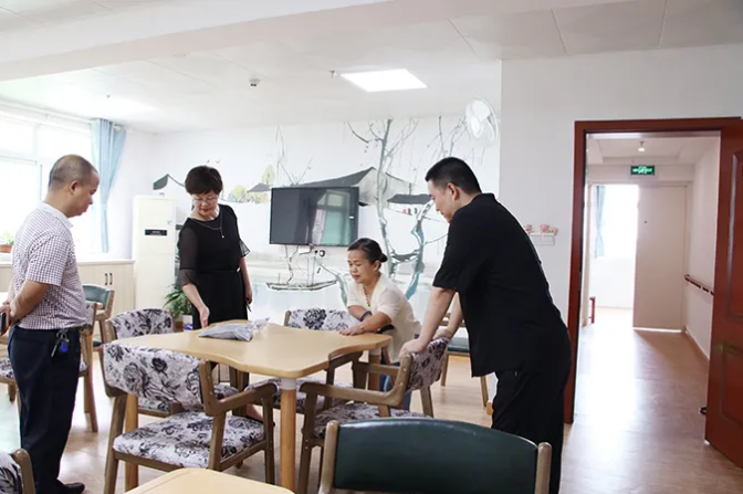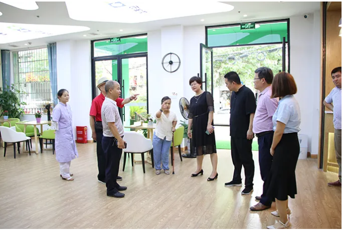 考察團(tuán)一行在銀海倆寶貝董事長王朝暉女士、公司黨支部書記周艷純女士等人的陪同下先后參觀了即將開業(yè)的雨湖區(qū)唐興寺社區(qū)長者醫(yī)養(yǎng)中心、岳塘區(qū)菊花塘社區(qū)長者照護(hù)之家,聽取了銀海倆寶貝總體概況、規(guī)劃布局、建設(shè)運(yùn)營,關(guān)于老人們?nèi)粘U樟稀⑽膴驶顒?dòng)等情況介紹;