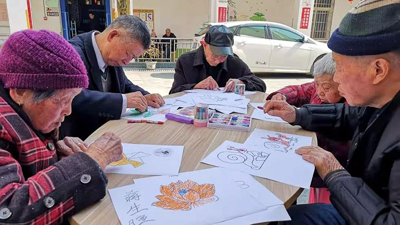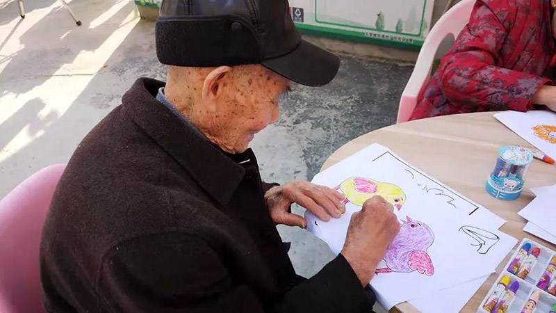 老人們都認真的對自己手中的畫進行填涂,現(xiàn)場氣氛十分的和諧與溫馨。