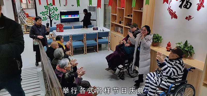 每當(dāng)有老人年滿90歲、95歲、100歲時(shí),倆寶貝會(huì)舉行長壽祝賀會(huì),邀請老人家屬一起熱烈慶祝。