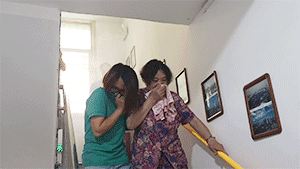 倆寶貝照護人員發(fā)現(xiàn)火情后,立即撥打火警電話,同時組織長者們緊急疏散,指導長者用濕毛巾捂住嘴,照護人員攙扶著他們依次沿著樓梯拐角有序撤退,并現(xiàn)場使用滅火器撲救初期火災。