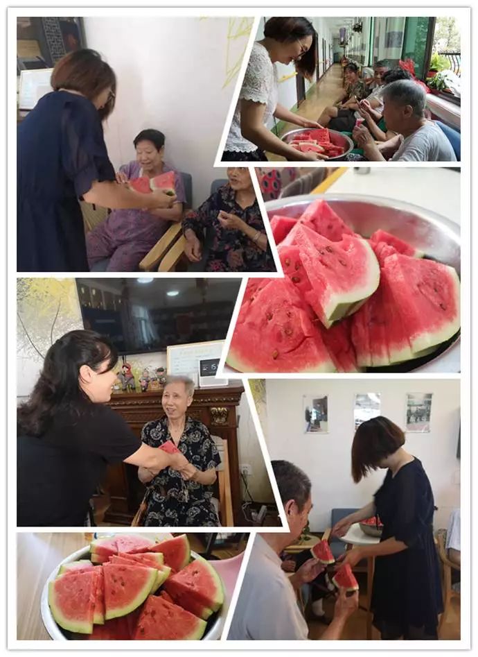這不,還經(jīng)常有家屬們送來可口的西瓜、消暑下火的銀耳蓮子羹給爺爺奶奶們和工作人員吃,每天中心內(nèi)是好不熱鬧。
