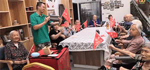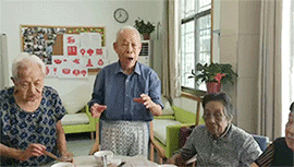 活動(dòng)現(xiàn)場(chǎng),各點(diǎn)的爺爺奶奶們引吭高歌,揮舞著小紅旗,唱著《歌唱祖國(guó)》,互相揮手致意說著節(jié)日快樂,他們雖然不在一個(gè)養(yǎng)老點(diǎn)上生活,但仿佛都像是熟悉的朋友,我想,這就是連鎖品牌的魅力吧~