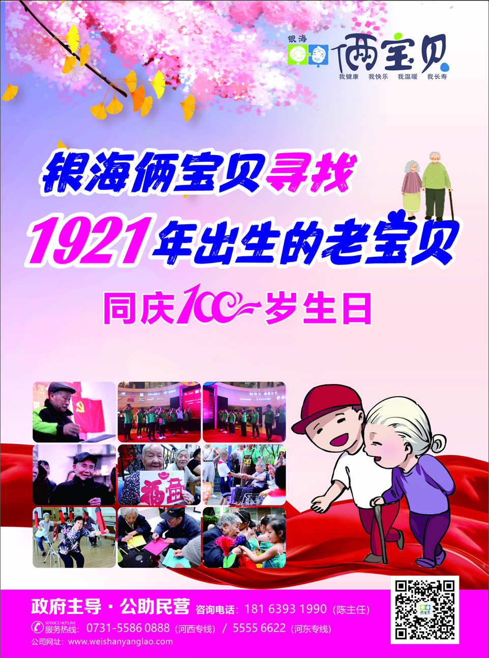 在黨的100歲生日到來之際,銀海家政集團(tuán)旗下銀海倆寶貝養(yǎng)老服務(wù)中心欲回饋社會,將在湘潭市全市范圍內(nèi)尋找1921年出生的老人,請他們講述別樣的人生經(jīng)歷,他們都是經(jīng)過槍林彈雨的戰(zhàn)爭年代。我們期待著分享每位老人的心路歷程,再一次接受心靈的撞擊和精神的洗禮。