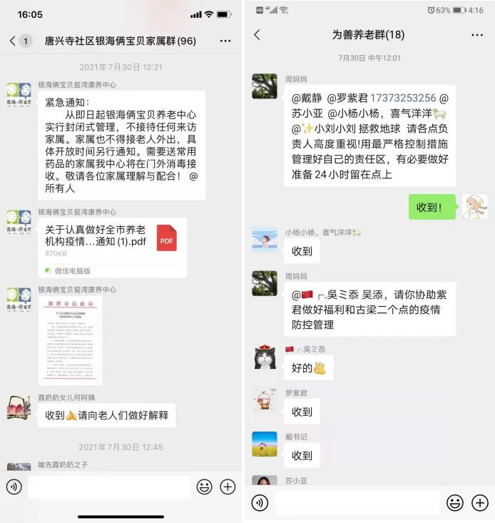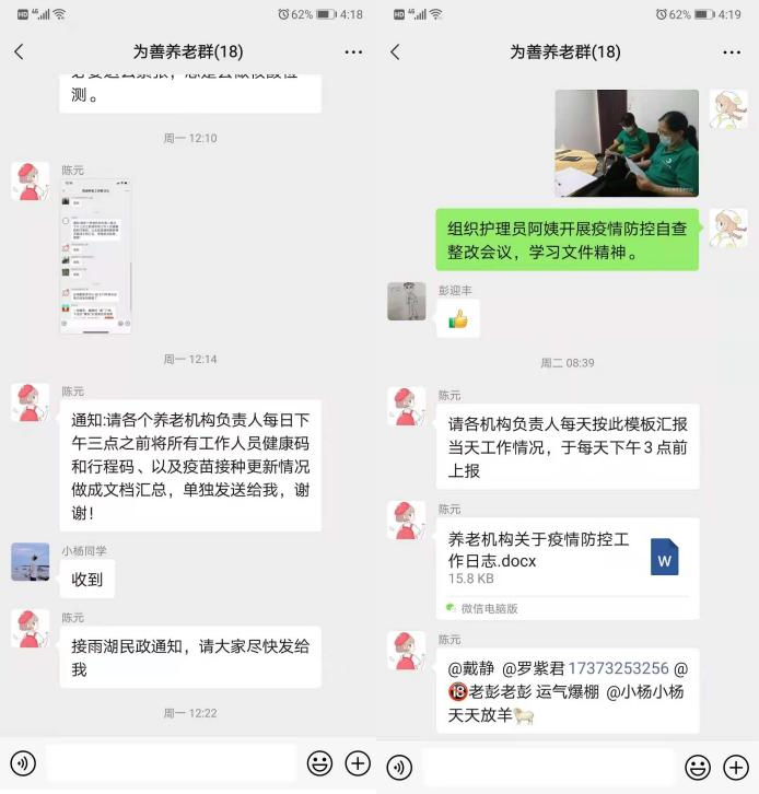 各長(zhǎng)者之家實(shí)時(shí)根據(jù)各級(jí)政府要求,嚴(yán)格落實(shí)封閉式管理,線上通過家屬群、微信;線下通過張貼對(duì)外通知及政府文件,并做好老人及家屬的解釋工作,封院管理,所有工作人員停休待崗,24小時(shí)入駐機(jī)構(gòu),做好老人及自身防護(hù)工作。