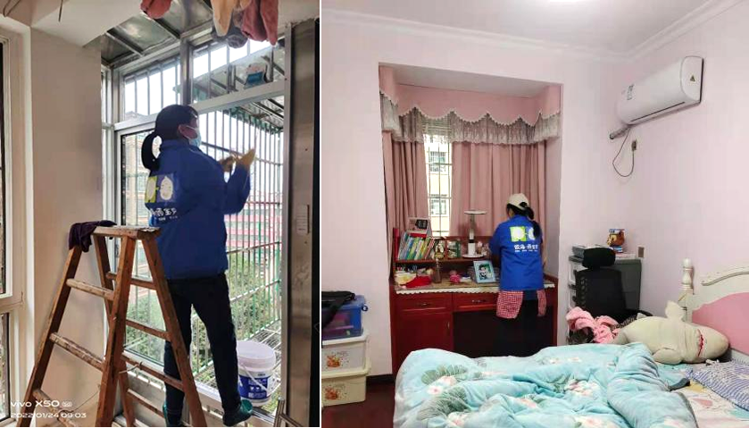 (服務(wù)人員在王禎偉家中搞衛(wèi)生)
