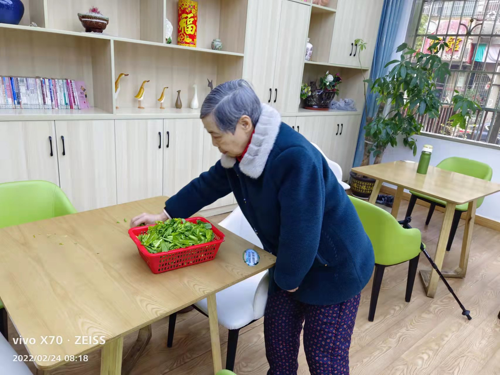 張淑湘奶奶帶頭為食堂里擇油菜做紅事,帶動(dòng)了銀海一大批老人也來(lái)?yè)癫?,一個(gè)學(xué)雷鋒做紅事的集體擇菜活動(dòng),迅速的開展起來(lái)了。大家在一起擇菜非常熱鬧、非常高興、非??鞓?lè)。大家七嘴八舌談起如何擇菜的問(wèn)題。有個(gè)奶奶說(shuō):擇油菜桿子要撕皮,和皮吃咬不動(dòng),和皮吃不舒服。有的奶奶說(shuō):擇油菜桿子不撕皮還好吃些,有嚼勁,好吃。還有的說(shuō):擇菜,擇不擇皮要看實(shí)際情況,老桿子要去皮,嫩桿子就不要去皮了。還有一位老爺爺說(shuō):去不去皮不重要,重要的是炒出來(lái)油菜好吃。我們廚房里劉大廚,炒出來(lái)的油菜,撕皮不撕皮都好吃,劉師傅炒出來(lái)的菜,不管葷菜素菜都好吃。在一片熱鬧的閑談中,不知不覺(jué),拾多斤油菜就擇完了。