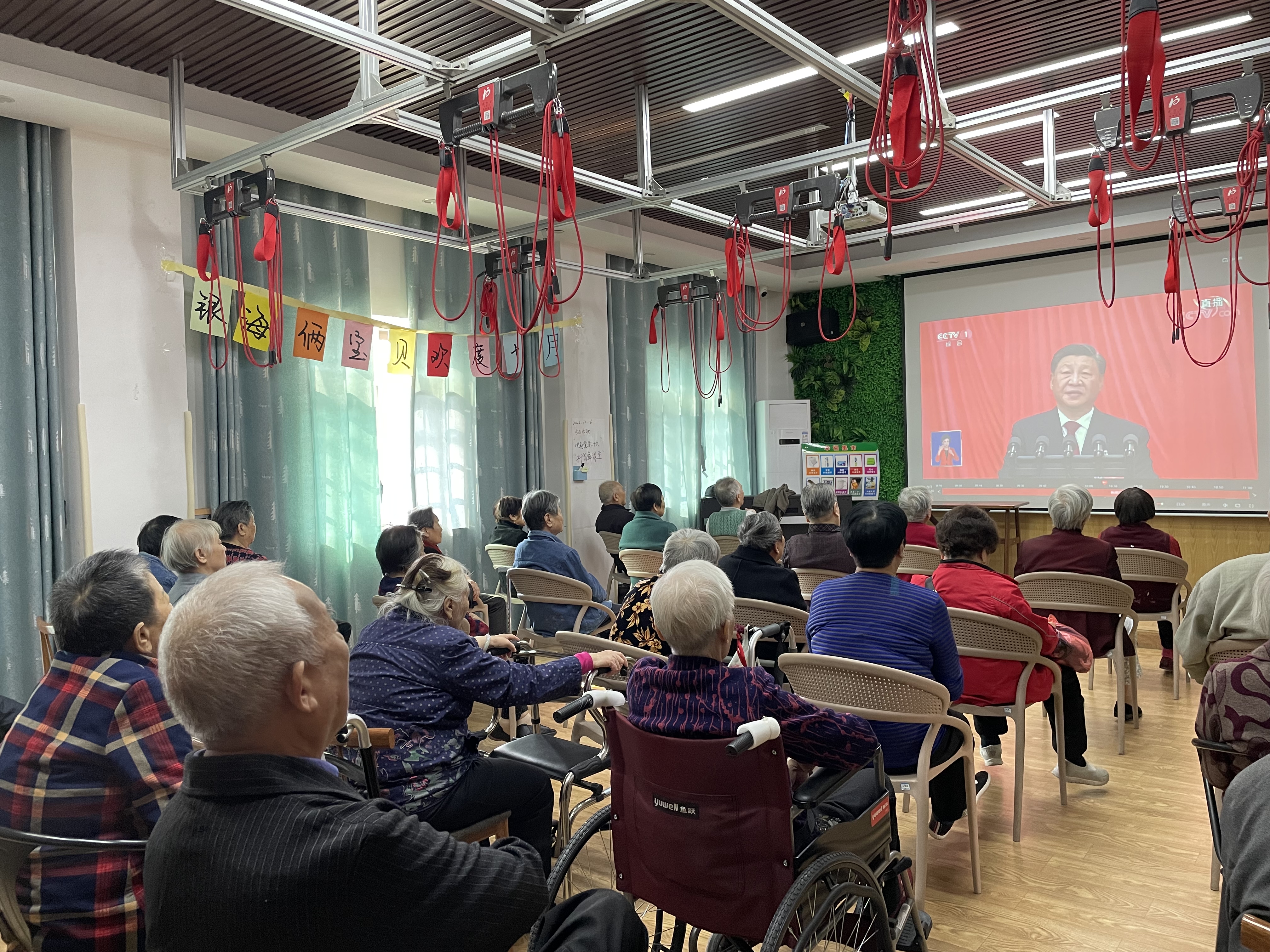 早上,長者們早早的來到活動室,聚集在電視屏幕前,懷著無比激動的心情共同收看了二十大開幕直播。